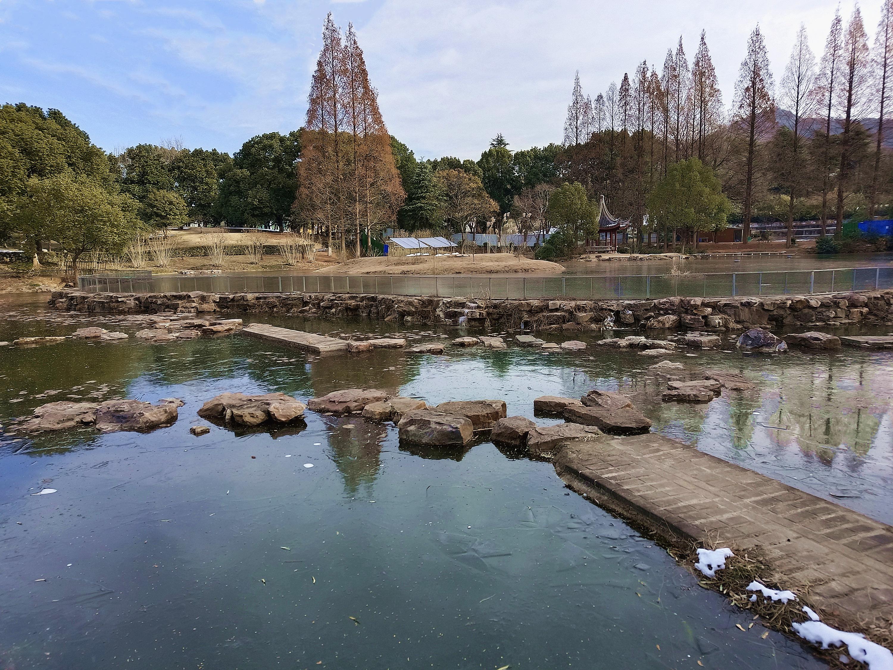 南京白马公园位于玄武湖东南端、紫金山西北坡下,占地500余亩。这里与国际会展中心、太阳宫形成一条环湖景观带,同时又是连接玄武湖景区与中山陵景区的纽带,使湖光山色交相辉映,体现南京山、水、城、林融汇一体的特色。雪后初晴的冬至日,我们乘坐91路公交车,来到公园赏景。