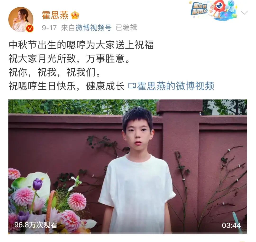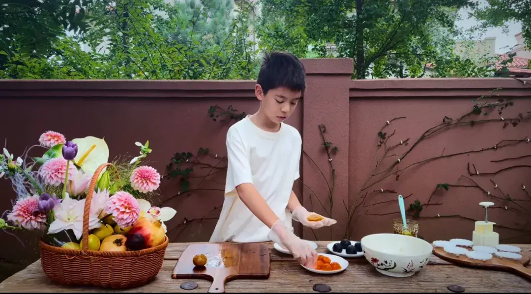 中秋节当天,霍思燕在微博发布了一条儿子嗯哼做月饼的视频⬇️
