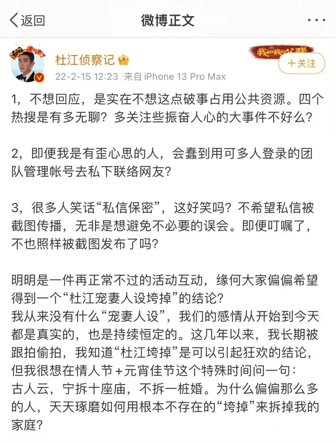 然而2022年有网友爆料,杜江用抖音私信女网红问其是否在武汉并加一下微信⬇️