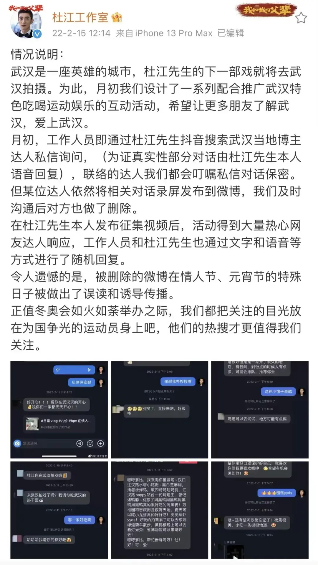 随后杜江和其工作室都发表了声明,澄清杜江的抖音账号是团队多人管理并且是为了新戏做准备。