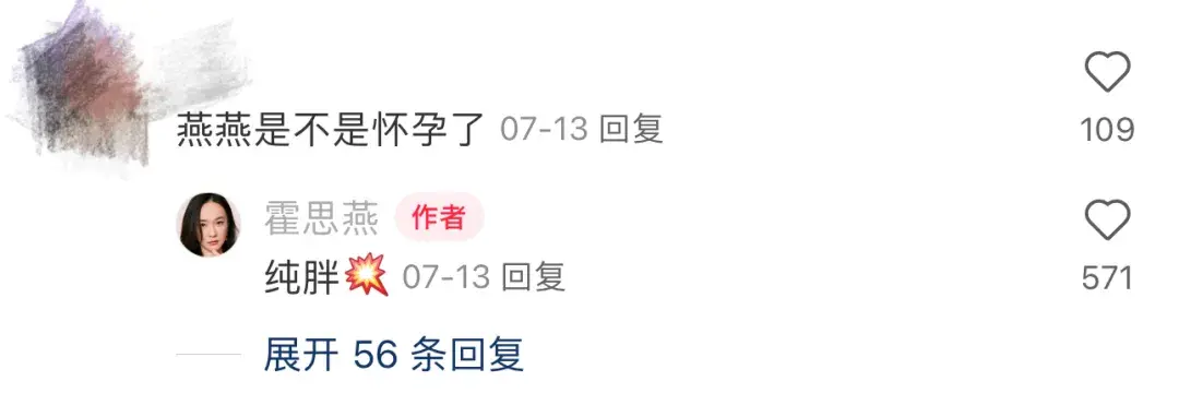 网友问“是怀孕了吗”,她也会大方回复“纯胖”,没有身材焦虑。