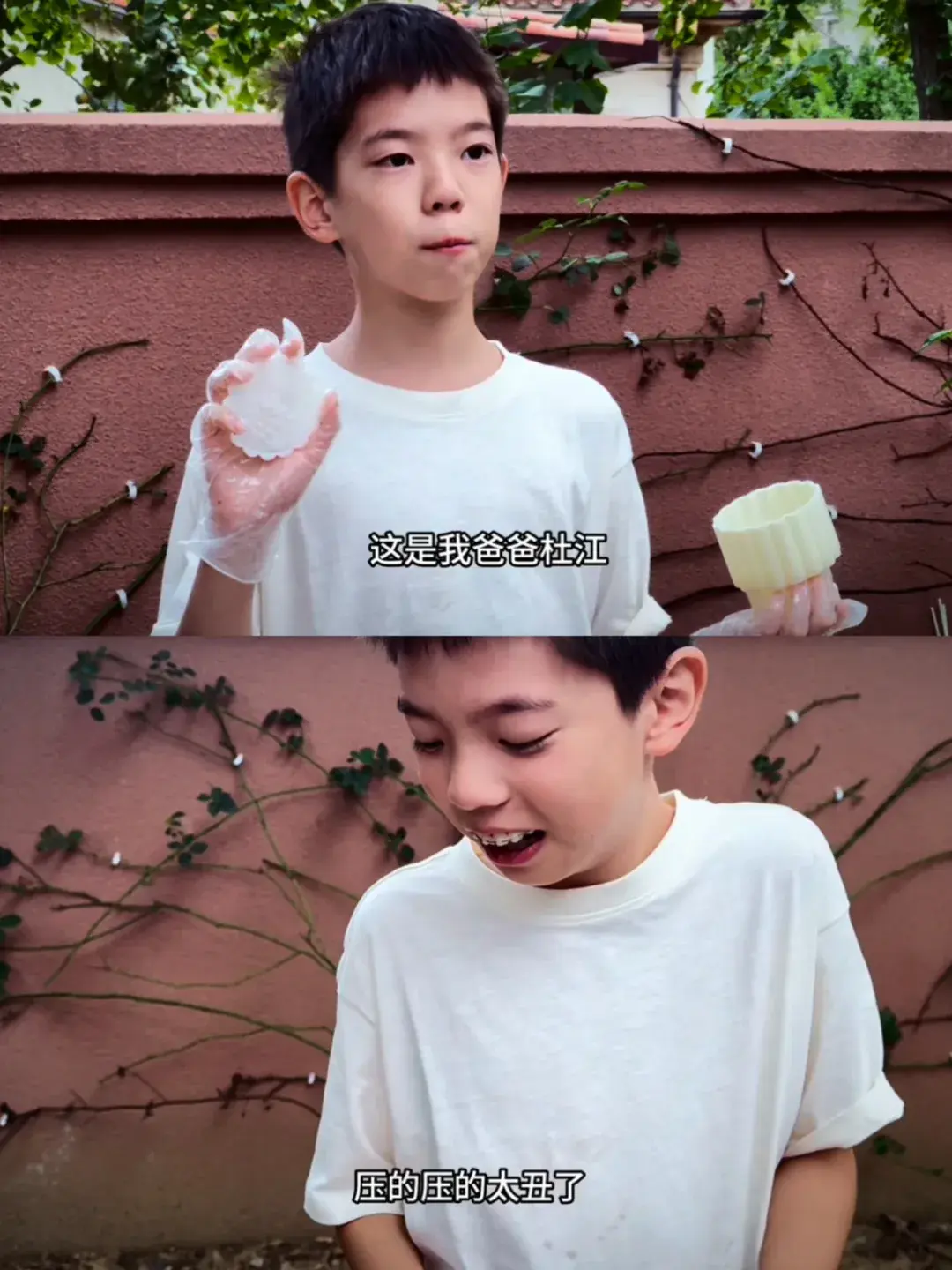 把爸爸杜江的脸压模压在月饼上,还说自己“压的太丑了”。