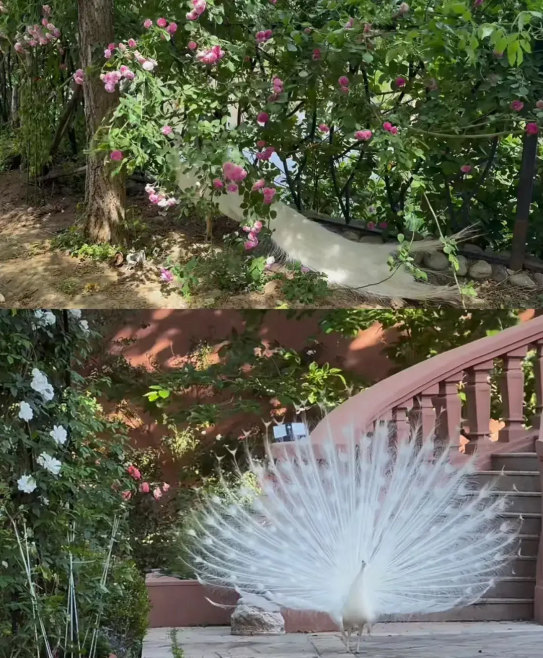 除了很多宠物狗以外,甚至还养了只白孔雀!