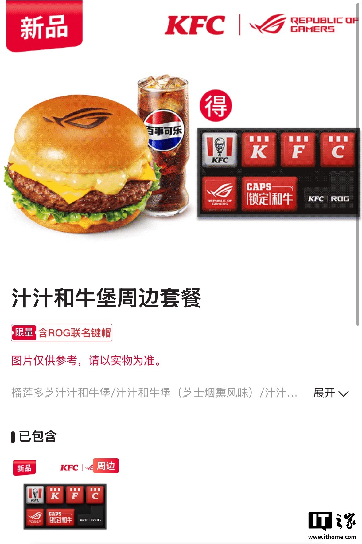 V 我 42.9 元:华硕 ROG 肯德基联名汉堡套餐开售赠限量键帽