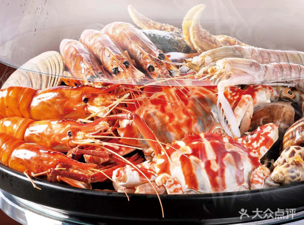 想实现「海鲜自由」的愿望? 舟市水产活海鲜·榴槤自助主打新鲜生勐的活海鲜,还有任食的泰国榴槤,性价比相当高,很受本地人和香港游客欢迎。自助价格大约每位¥221,每人会先配一锅清汤用来涮海鲜,汤底可以自己去调料区换成更重口味的火锅底。餐厅最贴心的是,每一种食材旁边都标明了「建议烫煮时间」,完全不用担心煮不好。海鲜种类极多,甚至有平时少见的海星、甲鱼、鲍鱼、膏蟹、石斑鱼、娃娃鱼、天鹅蛋等高级食材,肉质新鲜弹牙,随便吃就感觉已经值回票价。活海鲜区也非常丰富,有鲜活的大青口、贵妃贝、海螺、小龙虾等。此外,刺身区、热菜、烧烤、铁板现煎区等也吸引不少食客,能吃到比目鱼、鹅肝、带子、羊架等高档食材。
