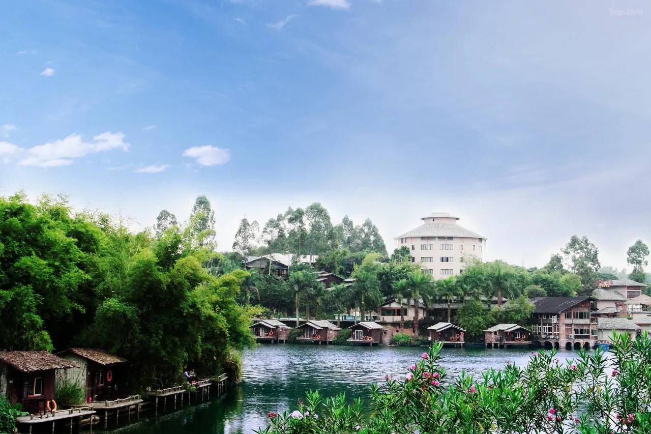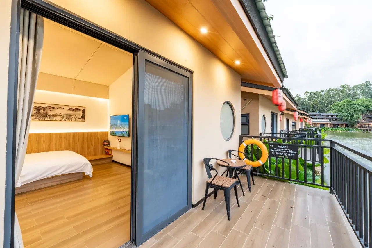 深圳观澜山水田园酒店坐落于观澜山水田园文化园内,园区本身就是国家级旅游景点与国画主题产业基地,融合湖景、古建筑与中式园林,住进这里就像步入了一幅活的山水画。酒店主打浓厚国风氛围,建筑多为仿古中式庭院,房内摆设木雕傢俱与水墨挂画,打卡很有意境。亲子旅客可在园内享受多样设施,包括儿童游乐场、水上乐园、小童乐园等,夏天很多人会来玩水~