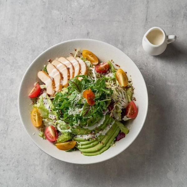 健康清新之选,鸡胸肉软嫩不柴,搭配熟度刚好的牛油果与混合生菜,淋上清爽酱汁后非常开胃。