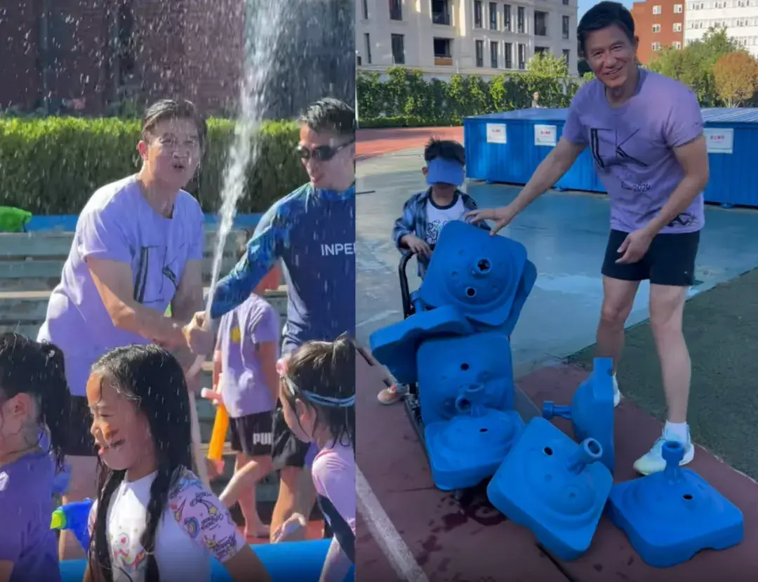 比赛结束后,李子雄还兴奋玩起了水,他还跟儿子一起帮忙收拾现场装置,看起来一点都不累。而一些年轻老爸,在半途就已经累得气喘吁吁了。
