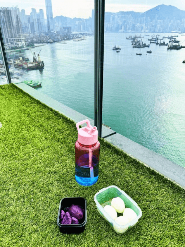 病癒后的Dada,做运动时也带备健康的紫蕃薯和烚蛋。