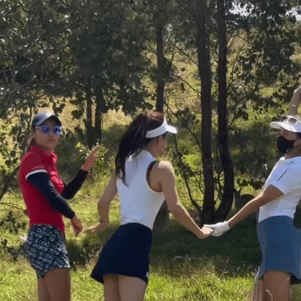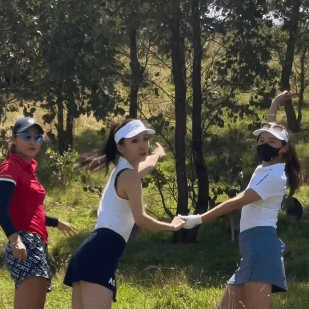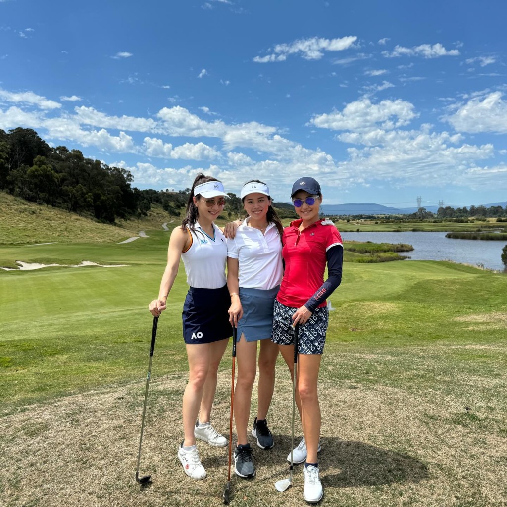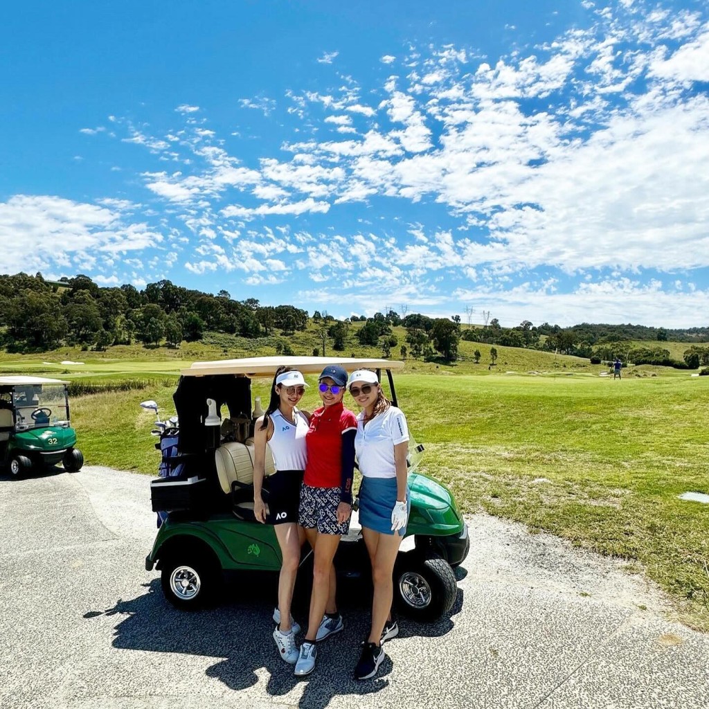 另一日,陈静Dada(左)与李思雅(中)到当地高尔夫球场打Golf。