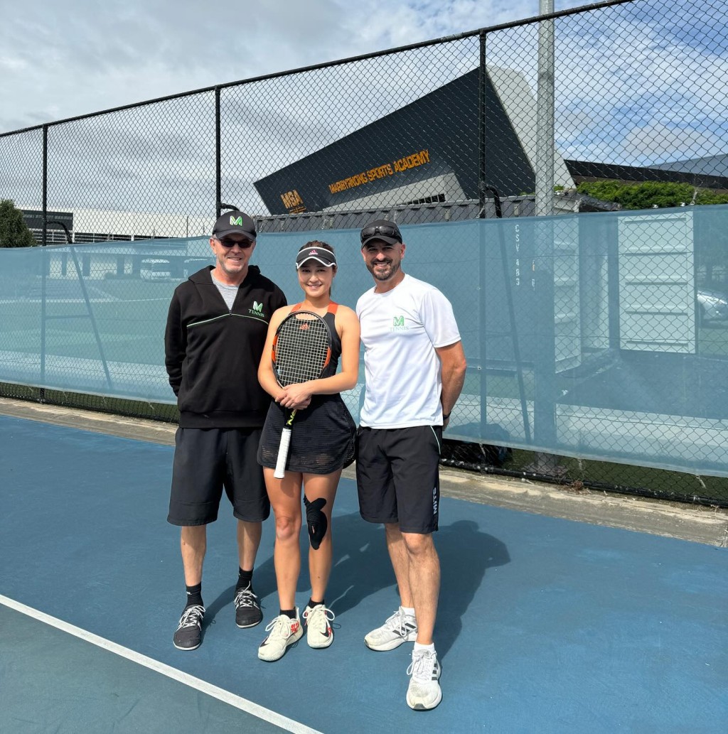 同行还有曾主持《体育世界》的前香港女子网球代表队成员李思雅(左)。