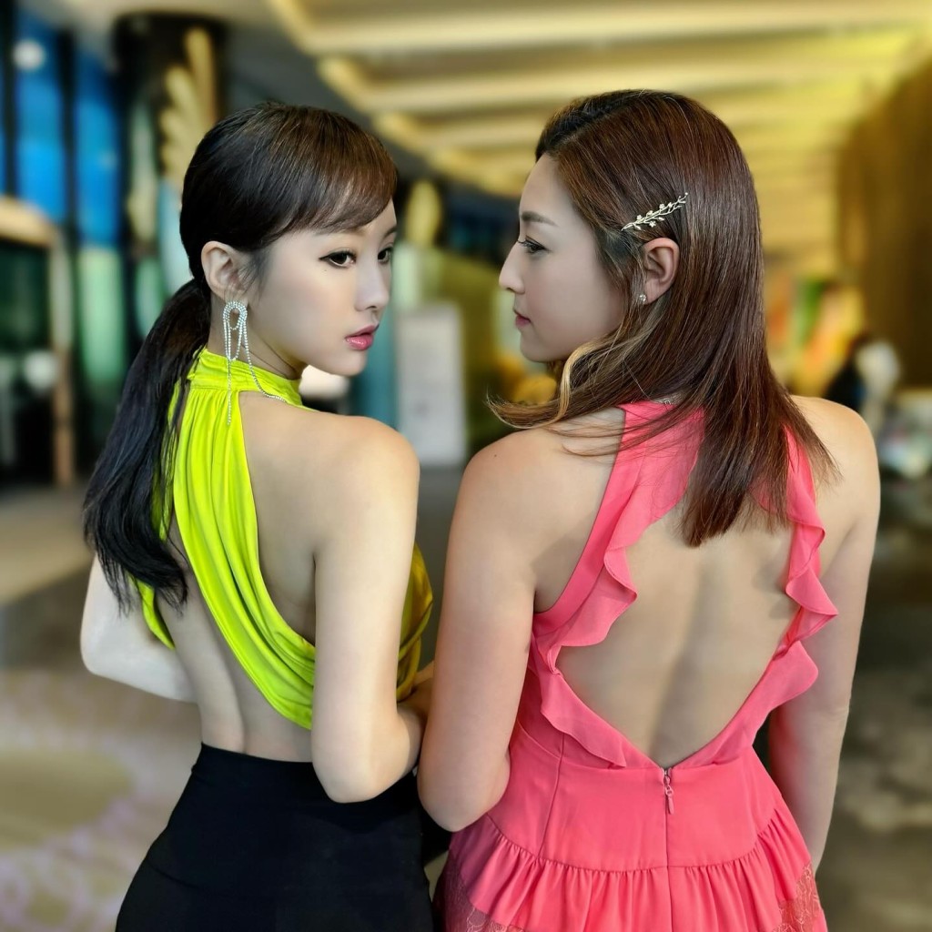 陈静Dada(左)大露背兼晒小蛮腰。