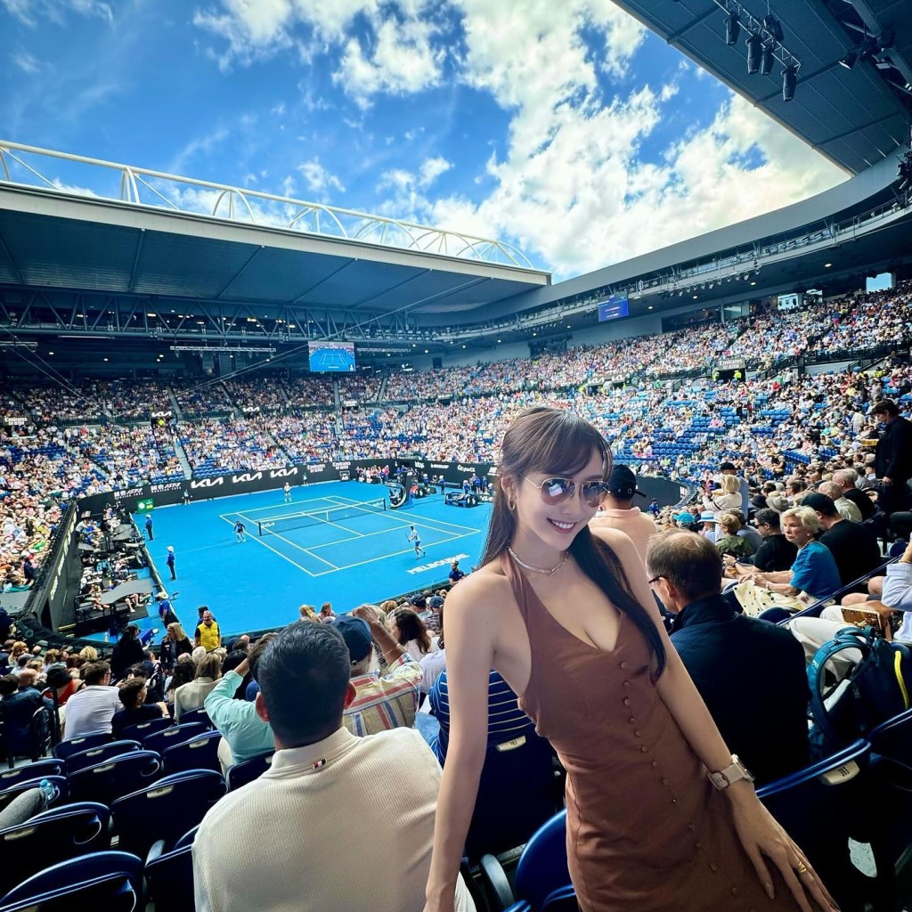 陈静Dada周二(23日)于社交网透露飞抵澳洲墨尔本,跟友人一起入场观赏澳洲网球公开赛,同行还有曾主持《体育世界》的前香港女子网球代表队成员李思雅。连日来两人于IG分享不少当地旅行花絮,昨午(26日)陈静Dada上载了入场睇准决赛的现场照,比起首日所穿露要背心造型,今次换上的超低胸连身短裙则性感得多,她同时大晒雪白美腿及3吋事业缐,一脸风骚,未知可有引来艷遇呢?一众网民亦纷纷赞:「辣」、「好美」、「同法拉真系几似样,一样咁靓咁索」,但有眼利网民惊嘆其手指如「外星人」般异常地长,质疑她过度P图。