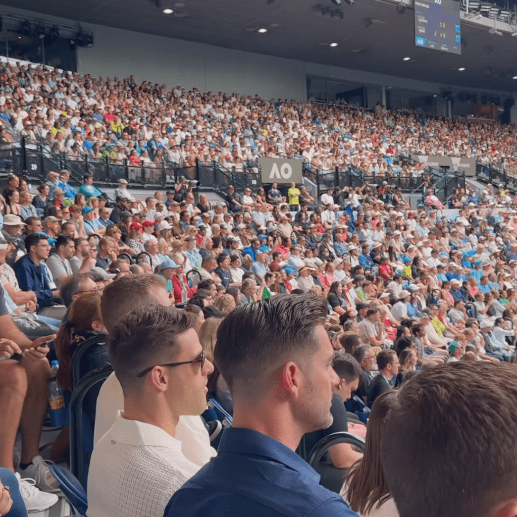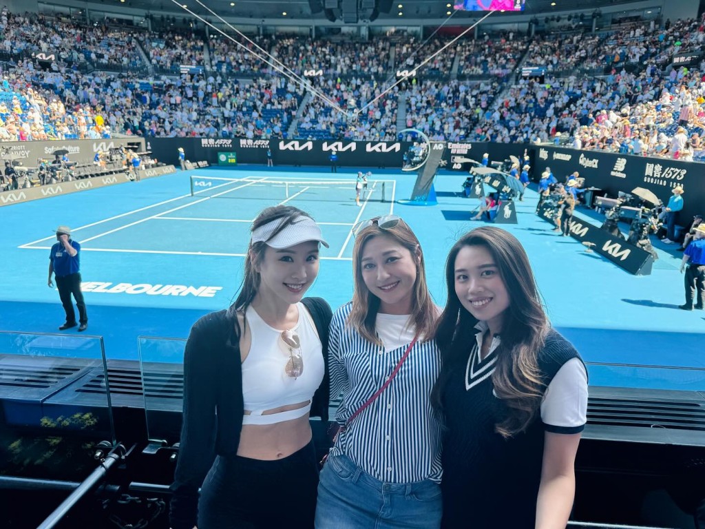 陈静Dada(左)跟友人一起入场观赏澳洲网球公开赛。
