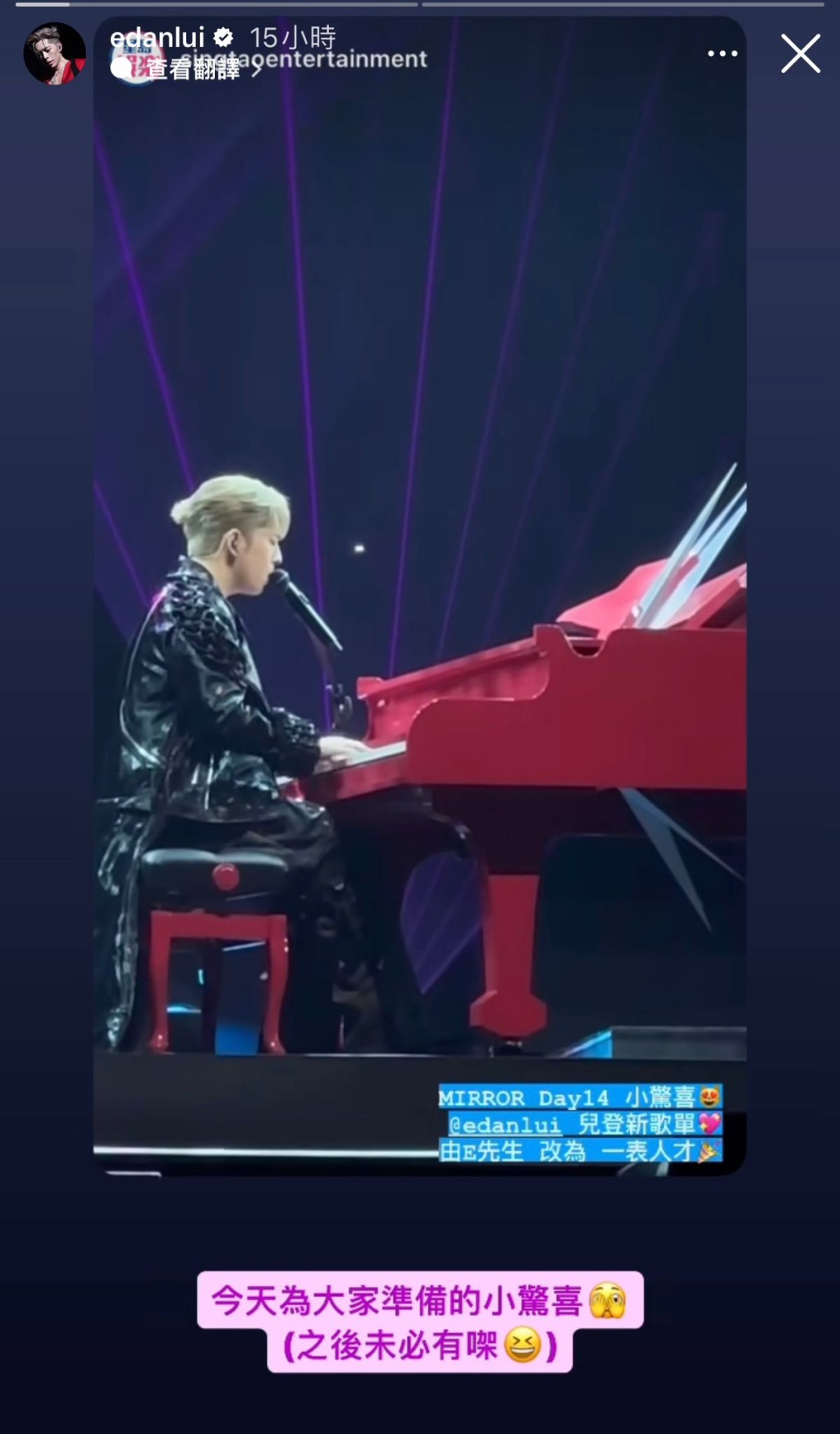 昨晚Edan也为粉丝带来惊喜,自弹自唱《一表人才》。