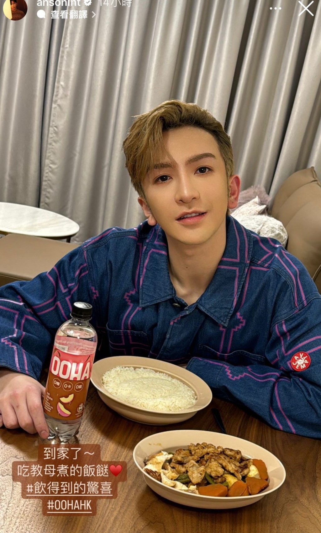 Anson Lo开心分享教母煮的晚餐。