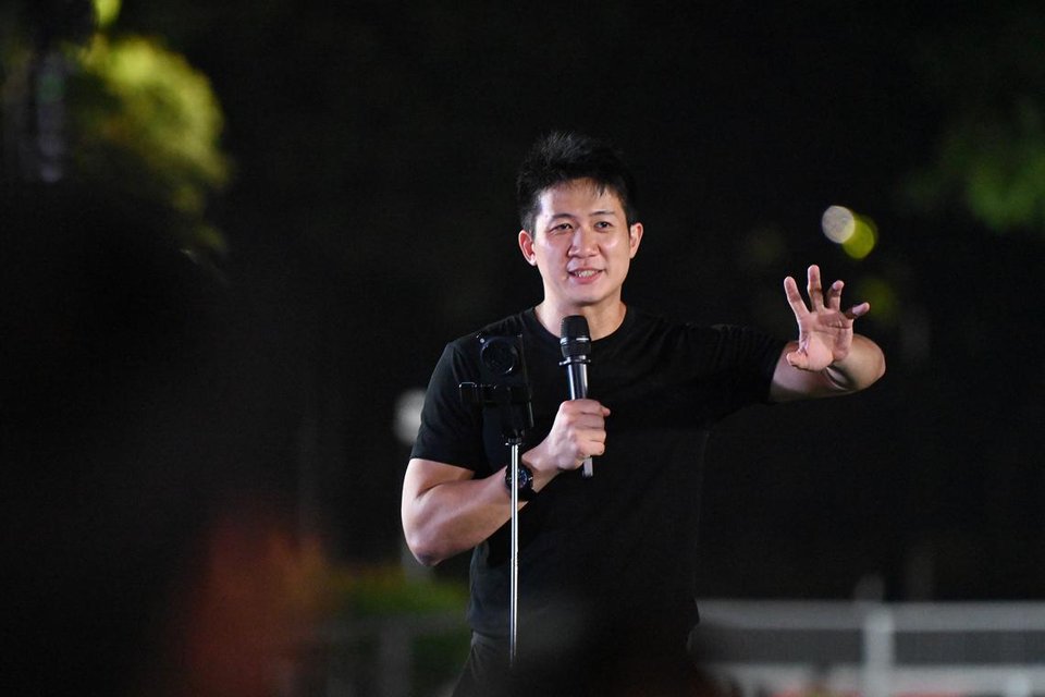 Mr Jeremy Tan, independent candidate for Mountbatten SMC, speaking at his rally at Home of Athletics on May 1. ST PHOTO: DESMOND WEE