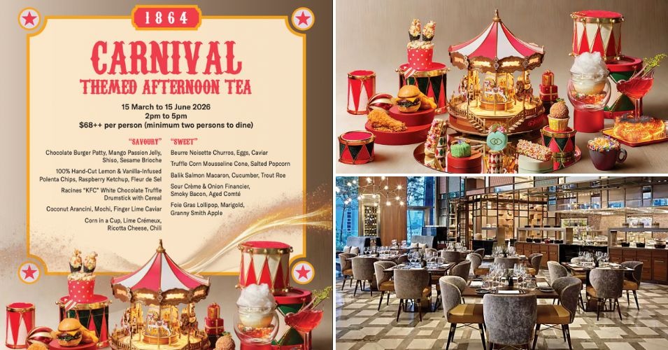 Carnival-Themed Afternoon TeaFacebook | Instagram | TikTok | Website📍 9 Wallich Street, Sofitel Singapore City Centre, Level 5, 1864 The Bar, Singapore 078885🕛 2pm–5pm 📅 15 March 2026 to 15 June 2026