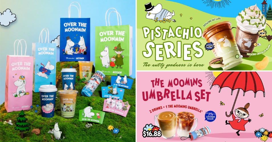 You can look forward to their Roasted Coconut Latte (S$6.80), which perfectly blends the intense espresso with the mellow flavours of toasted coconut. The pistachio series, which will launch on 19 March 2026, will feature a Pistachio Chocolate Frappe and Pistachio Oat Latte that are made with premium ingredients. Be sure to also look out for their adorable Moomin umbrella and post-its that come with the purchase of selected drinks.
