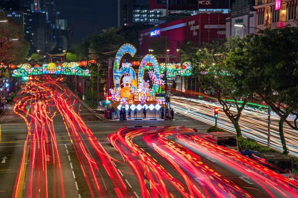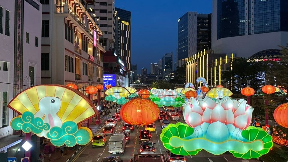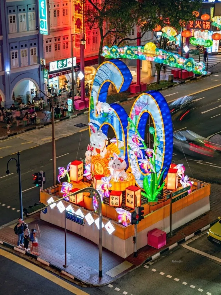 At the heart of Chinatown stands a striking eight metre tall centrepiece, a sculptural tribute to SG60. The bold “60” at the core of the installation is set against the backdrop of the Singapore skyline, symbolising the nation’s journey of growth and progress. Surrounding the structure are motifs of rabbits, mooncakes, traditional lanterns, and vibrant orchids.