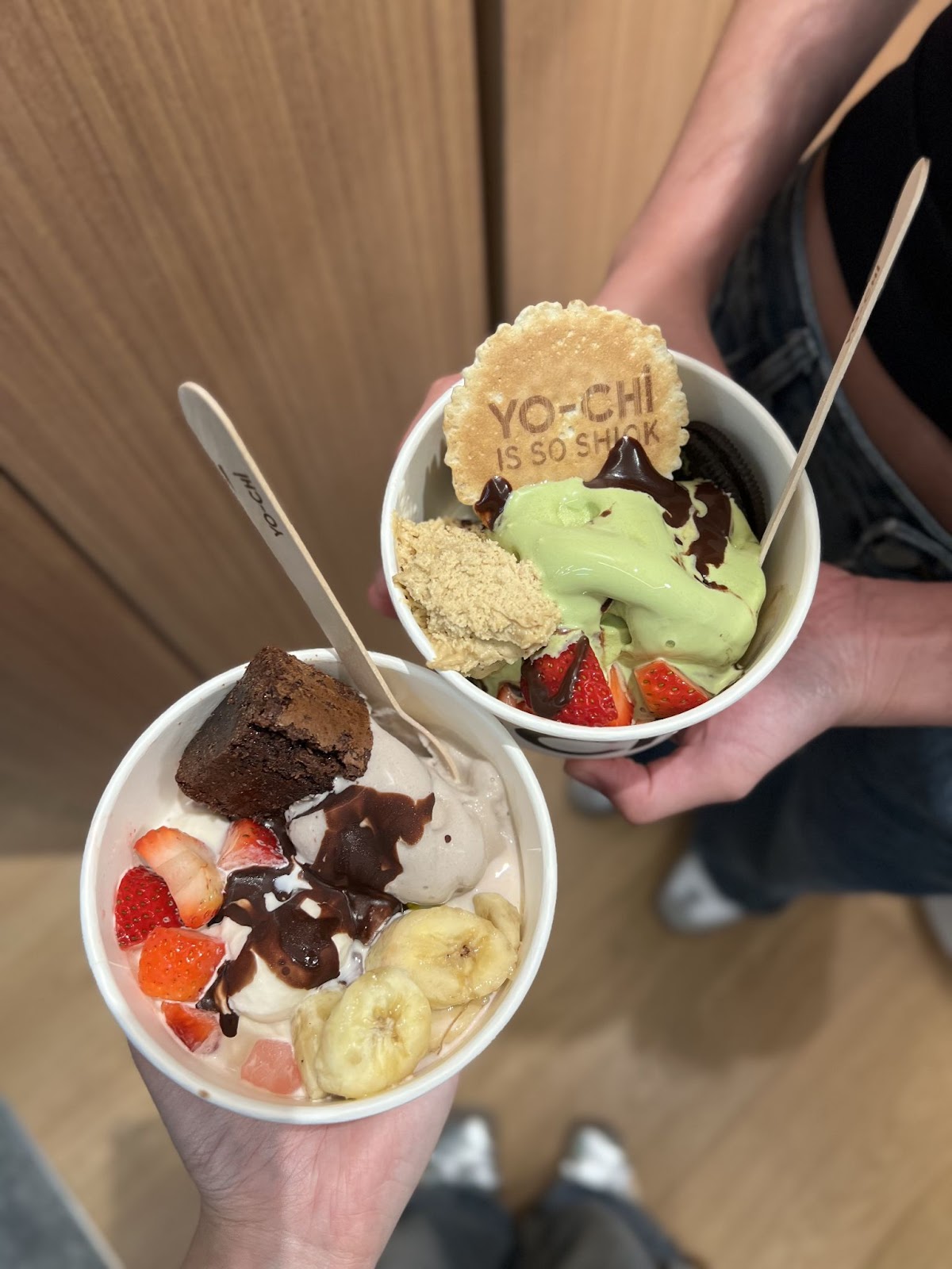 Over 30 toppings and sauces include fresh cut fruits, Mixed Berry Compote, a fountain of warm Nutella, and more. SG-Exclusive toppings include our childhood snack, Want Want Crunchy Milk Balls (think the nostalgicXiao Man Tou), Nata De Coco, as well as the “Yochi is So Shiok” Wafer.