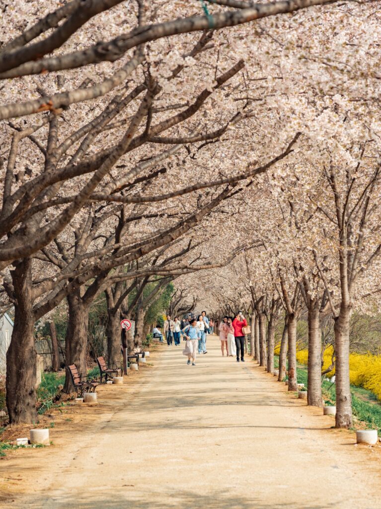 The Yeongdeungpo Yeouido Spring Flower Festival in particular—features over 1600 cherry blossom trees, street performances, and night illuminations—offering a free and scenic experience along the Han River.