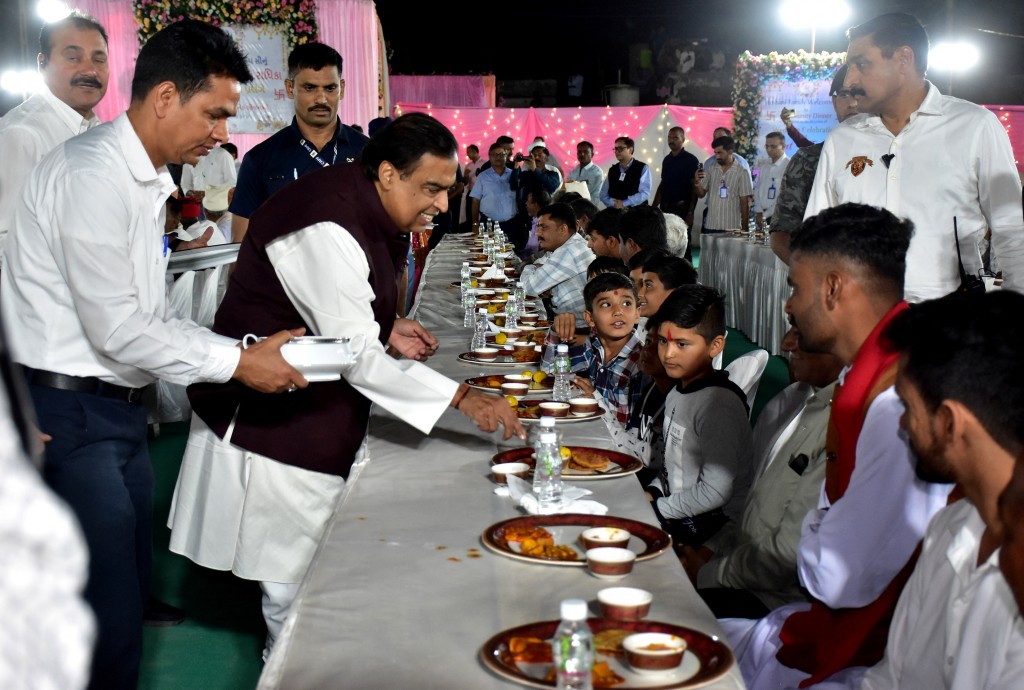 Mukesh Ambani幼子Anant为村民提供佳餚。美联社