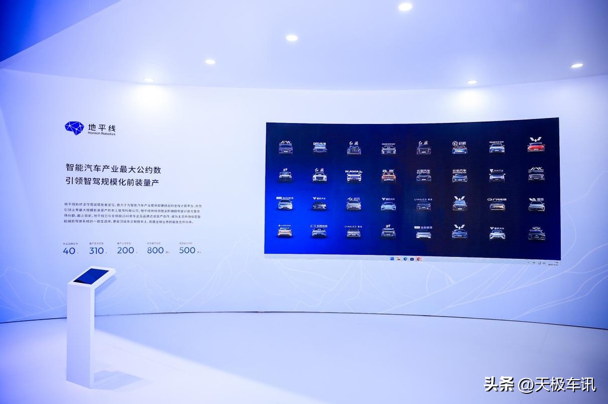 作为地平线技术实力的集中体现,HSD的研发与落地应用离不开其背后生态伙伴的支持。展台量产车型的群像图,展示出地平线作为国民全场景辅助驾驶“最大公约数”的商业实力,其“开放共赢”的生态理念持续吸引车企与合作伙伴加入。地平线前装量产出货已经突破800万套,当前市场每三台智能汽车,就有一台搭载地平线的辅助驾驶方案。