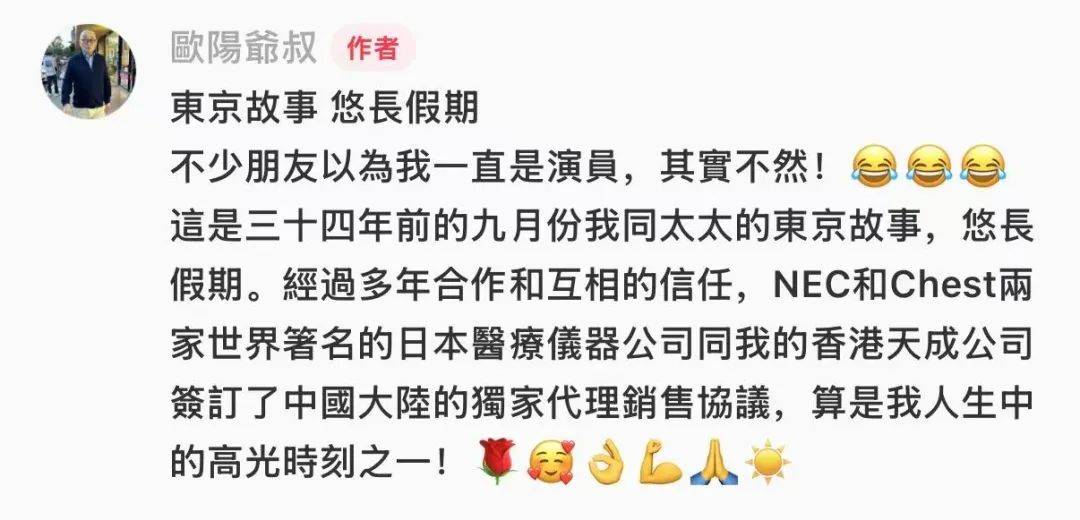 欧阳爷叔很快就创业单干,他创办医疗设备公司,借助香港地利,成为日本医疗仪器的独家代理,借助改开之力,吃到时代上升经济上行的红利。