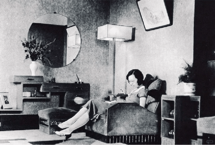 ▲ 这是张爱玲的姑姑张茂渊,在她和张爱玲妈妈黄逸梵的常德公寓里留影,可以看出当时时髦的现代风格。