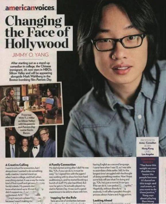 幸运的是吉米后来成功了。试镜100多次,获得《破产姐妹》中客串角色,后来获得《硅谷》中有名有姓的角色杨建(Jian Yang),性格从呆萌到暗黑,从客串发展成为常驻角色,终于成名。