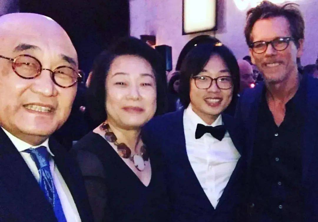 ▲ 《爱国者日》(又名《恐袭波士顿》)首映礼,吉米带父母参加,红毯上见到很多明星,他们和着名演员凯文·贝肯合影。吉米说,父母这么多年的失望随着这张照片消失了。