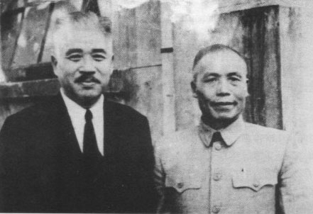 ▲ 1948年,吴蕴初与李宗仁,左为吴蕴初。吴蕴初1948年出国,1949年10月回国,受到周恩来接见,称他为“味精大王”,之后他在上海发展化工业,担任要职,于1953年病逝,享年62岁。