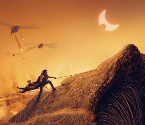 人们小心翼翼地开采香料,一旦发现沙虫来袭,就得用大型运输机将采砂车从空中运走。有一群人却能与沙虫抗衡,甚至利用沙虫。