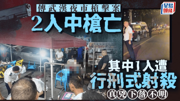 湖北武汉18日传出枪响。网传当地一烧烤店有人开枪射击食客,最少2人中枪,其中1人头部中弹,坐在椅子上失去知觉。有网民指,事发时枪手最少开了4枪,造成2人死亡,行兇后逃去。19日中午,当地警方发通报,确认18日晚发生一宗「故意伤害案」,事件导致1死2伤,疑犯已被捕。