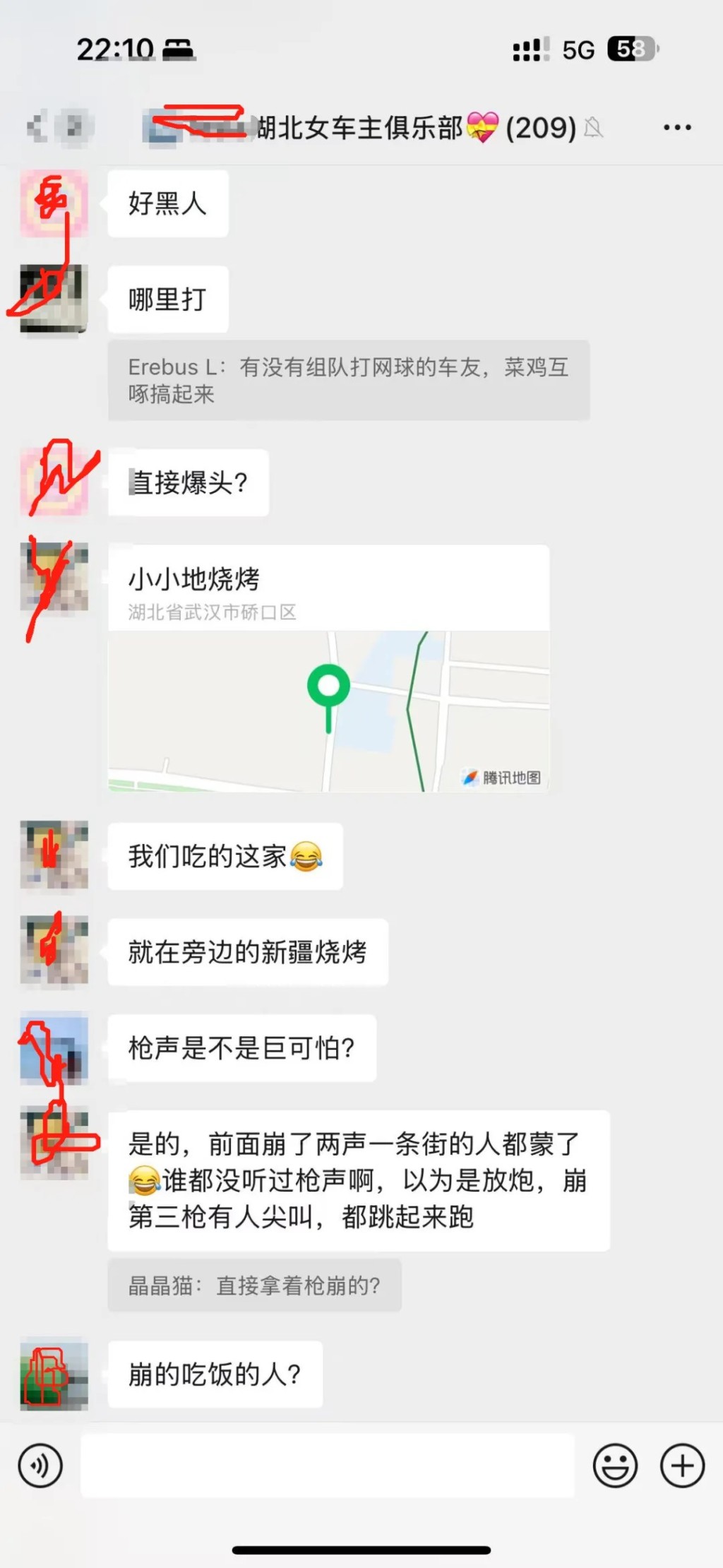 18日晚,外网流出多条影片,指湖北武汉硚口区崇仁街爱国社区,于当晚10时左右一个烧烤摊档发生枪击,有人持枪射击在户外的食客。